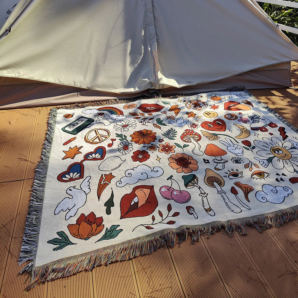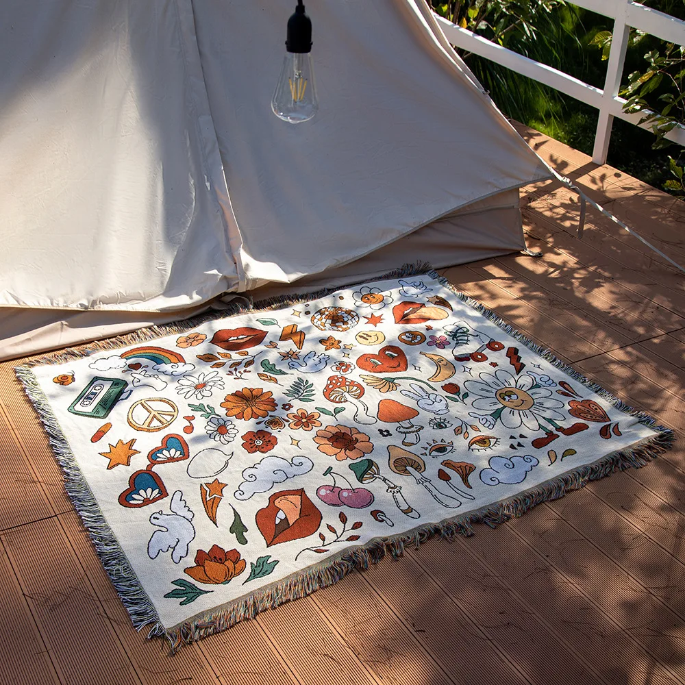 【Multifunctional Design】The throw can be used as a sofa blanket, tablecloth, carpet, or tapestry
